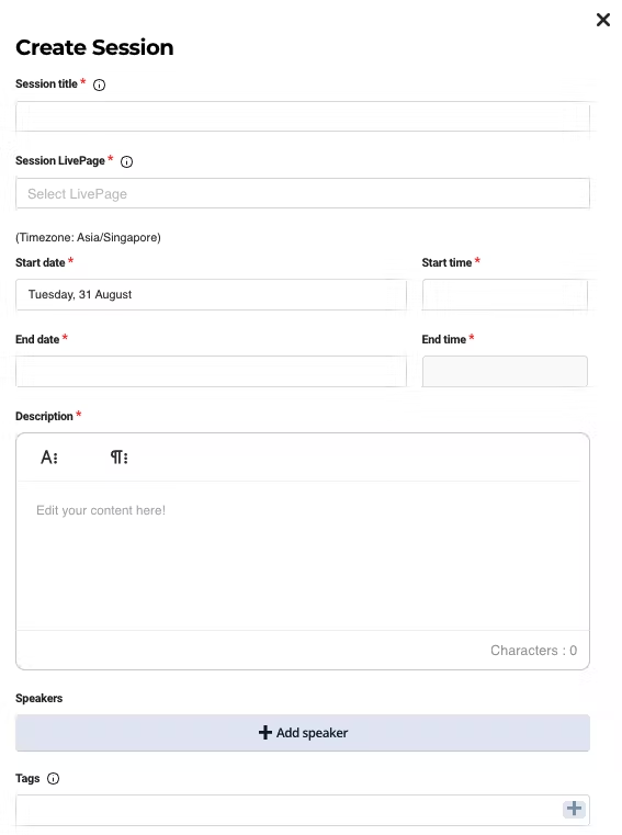 Simply populate the information of each session and tag them to the relevant livepages.