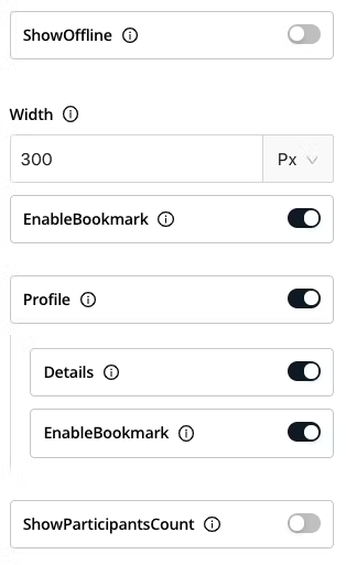 - Details: Make the participant's profile (Name, Job Title, Company) visible or not visible.