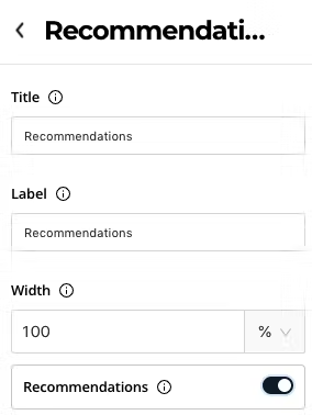 The width allows you to specify the width of the Recommendation Block in the livepage. The recommended value is 100% for a better experience.