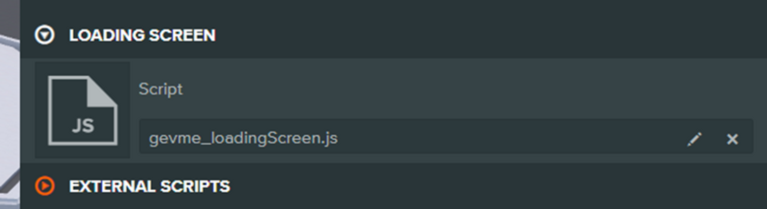 Use a custom loading screen script or the included script “gevme_loadingScreen.js” under scene settings.