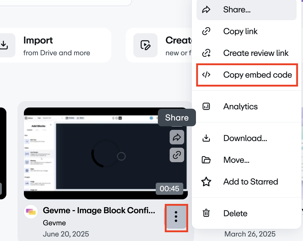 4. Retrieve the embed link, copy the URL and paste it into Gevme
