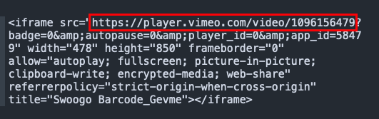 Vimeo Embed Link Format: https://player.vimeo.com/video/{video_id}