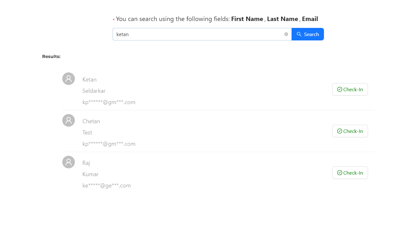 Traditionally, check-in has relied primarily on QR code scanning. With this update, attendees can optionally search for their registration details using configurable fields such as Name, Email, Company, or Registration ID.
